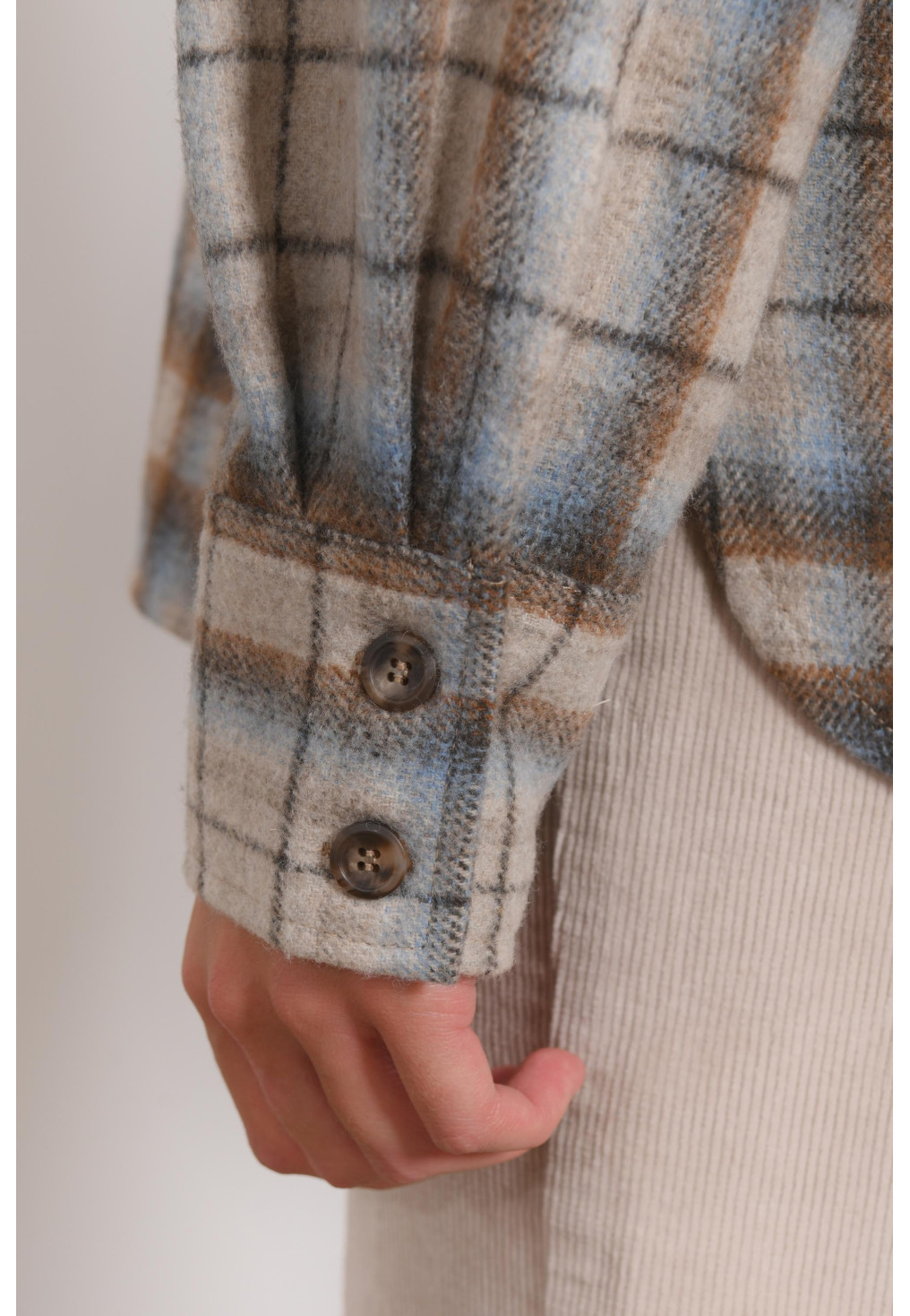 • Manches longues, poignets fermés par deux boutons