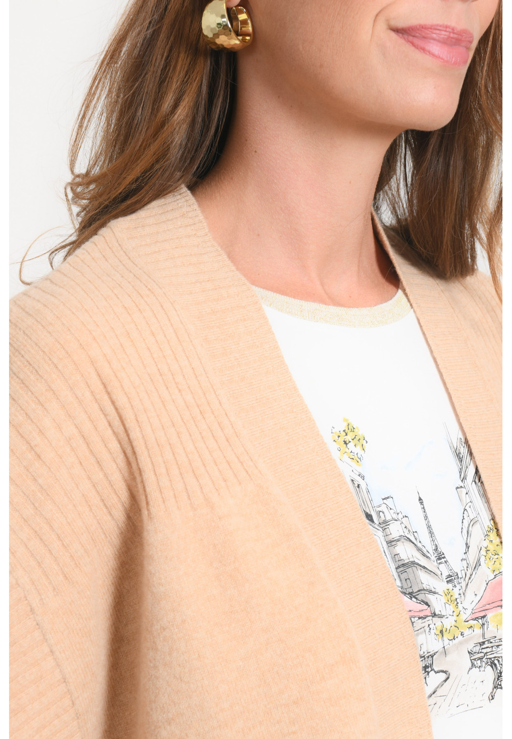 • Joli détail du tricotage en bord côte sur les extrémités, le haut du dos et les épaules