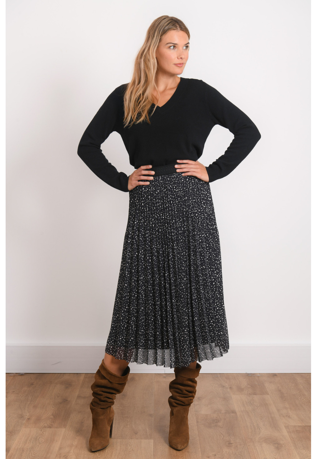JUPE PLISSEE - RENKA - NOIR/ECRU - Antonelle