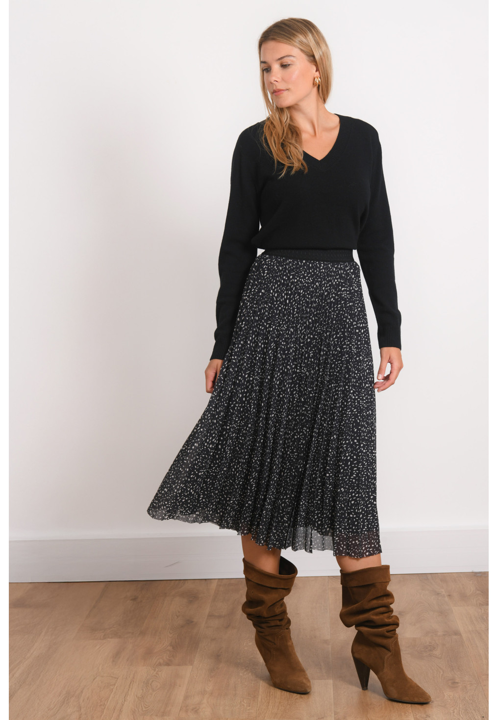 JUPE PLISSEE - RENKA - NOIR/ECRU