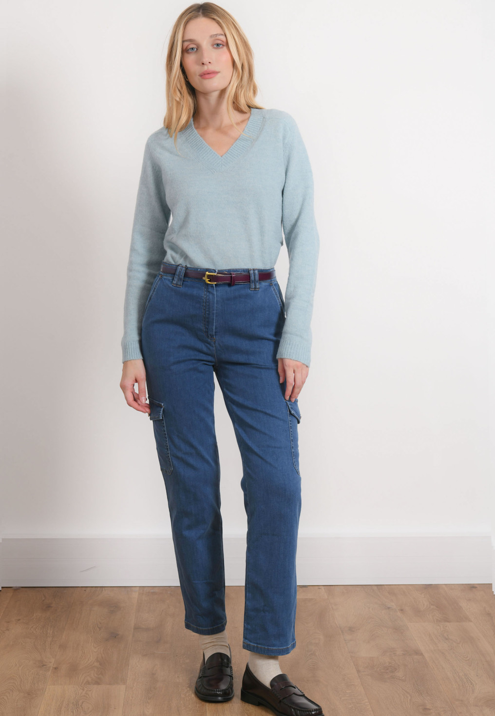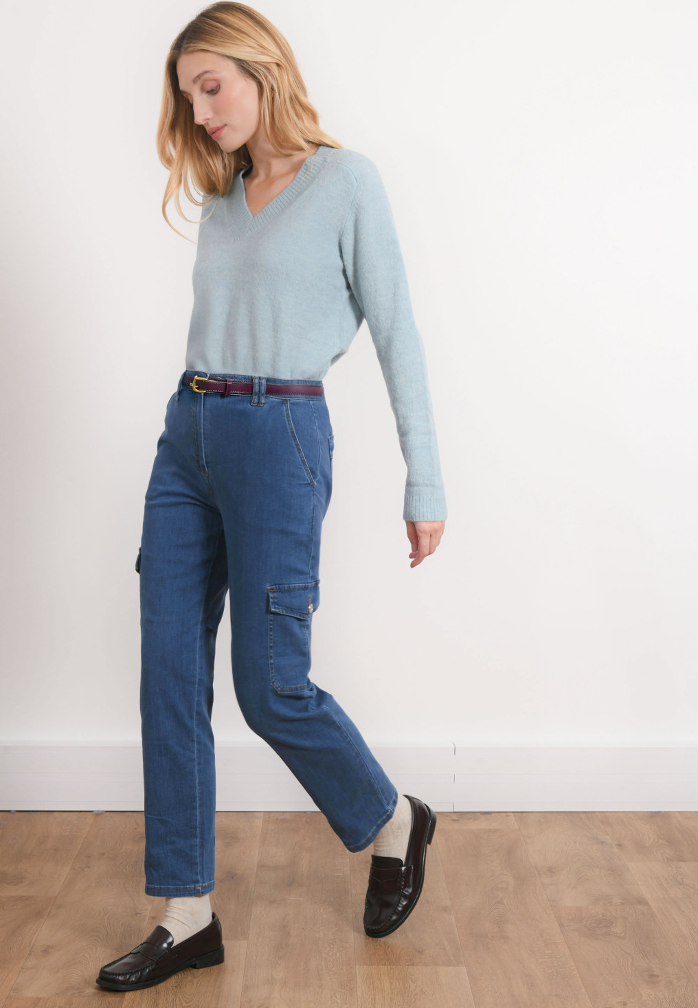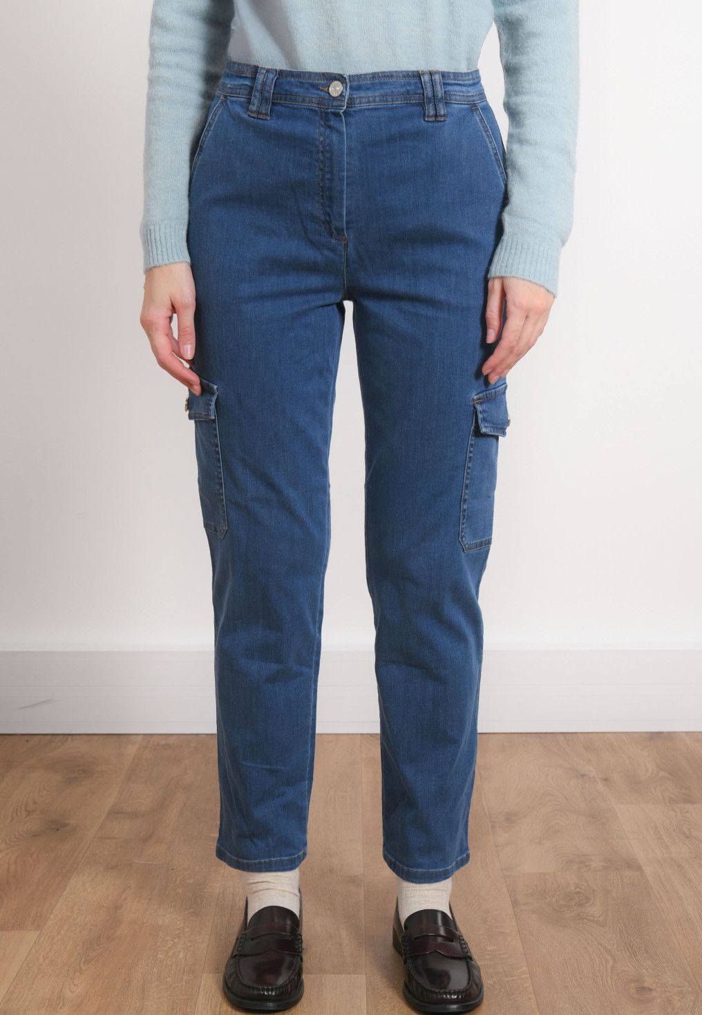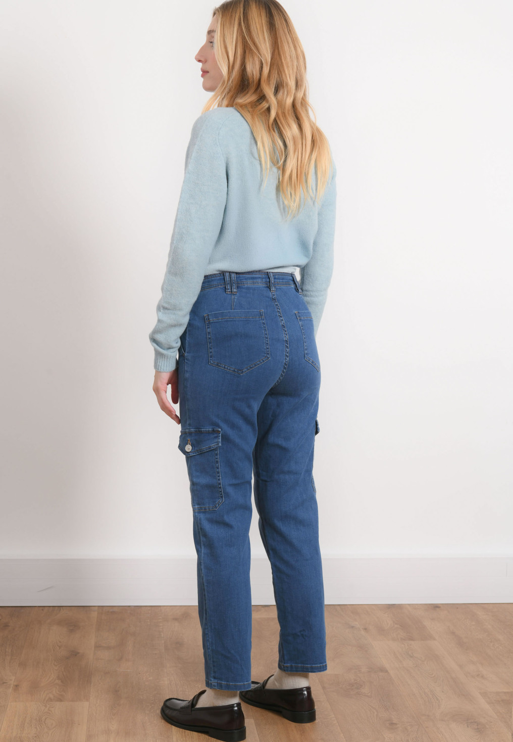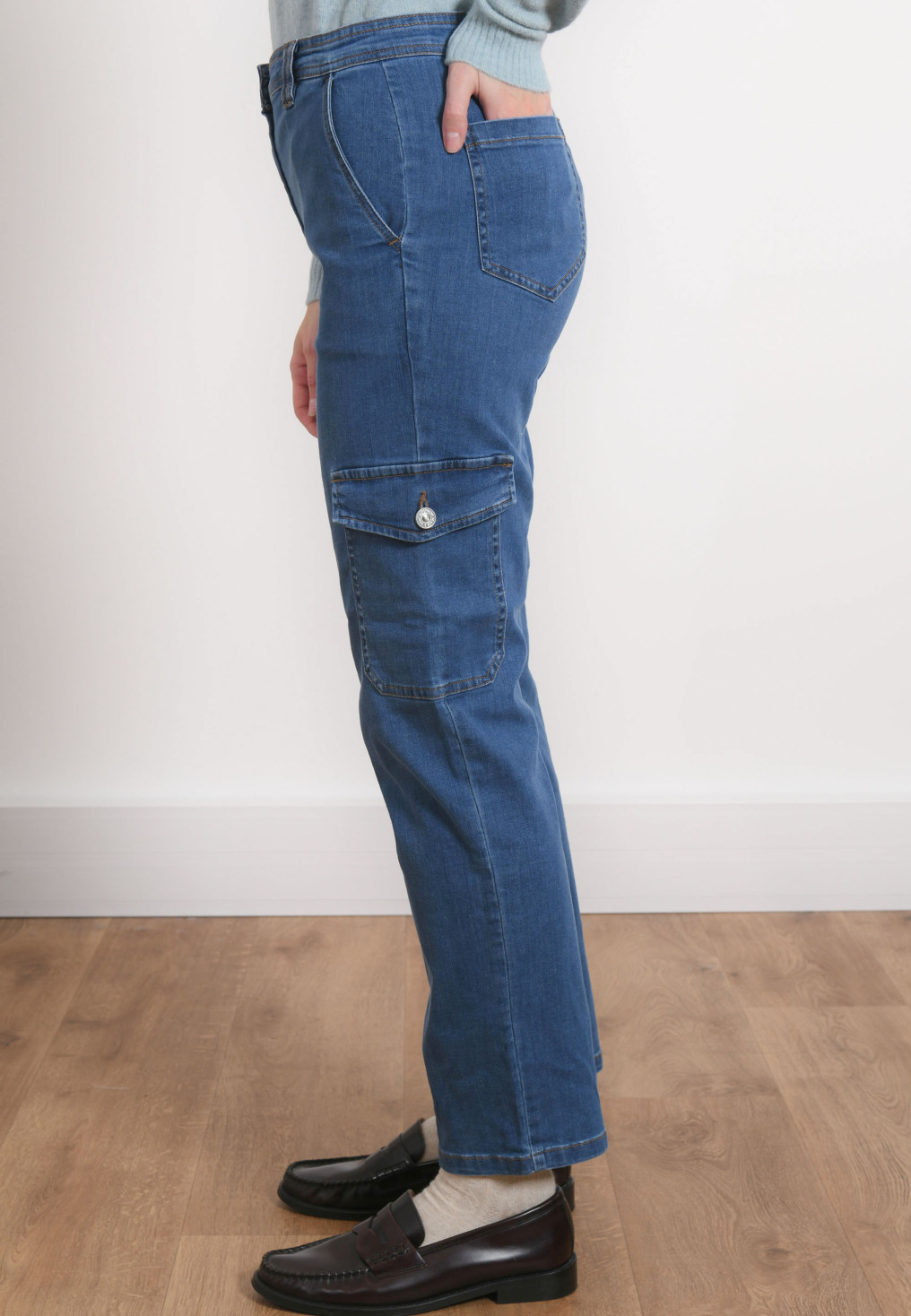- Pantalon dans le style cargo disponible en Blue