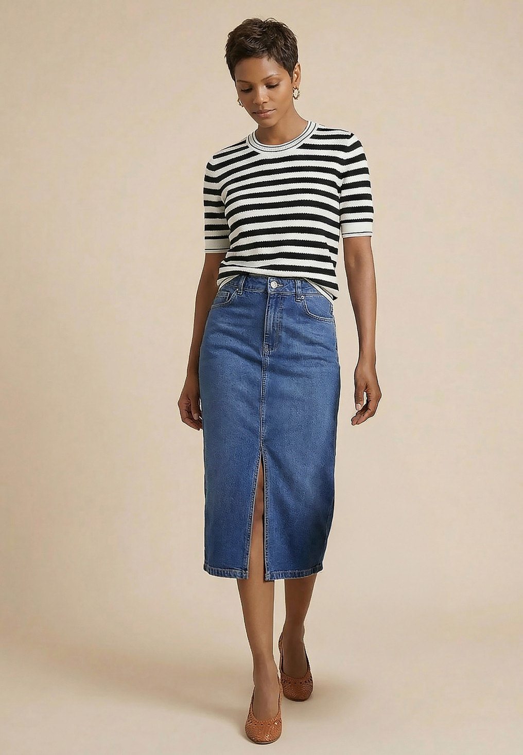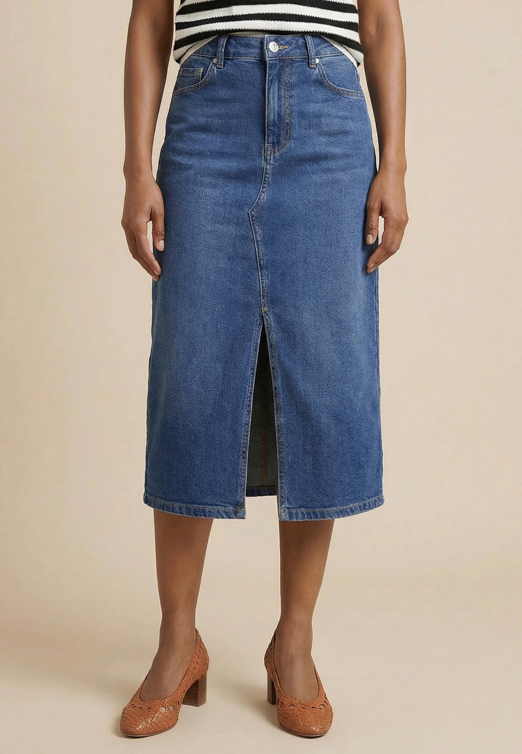 - Jupe denim mi-longue