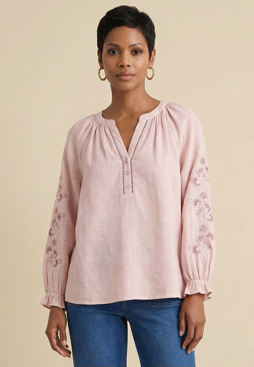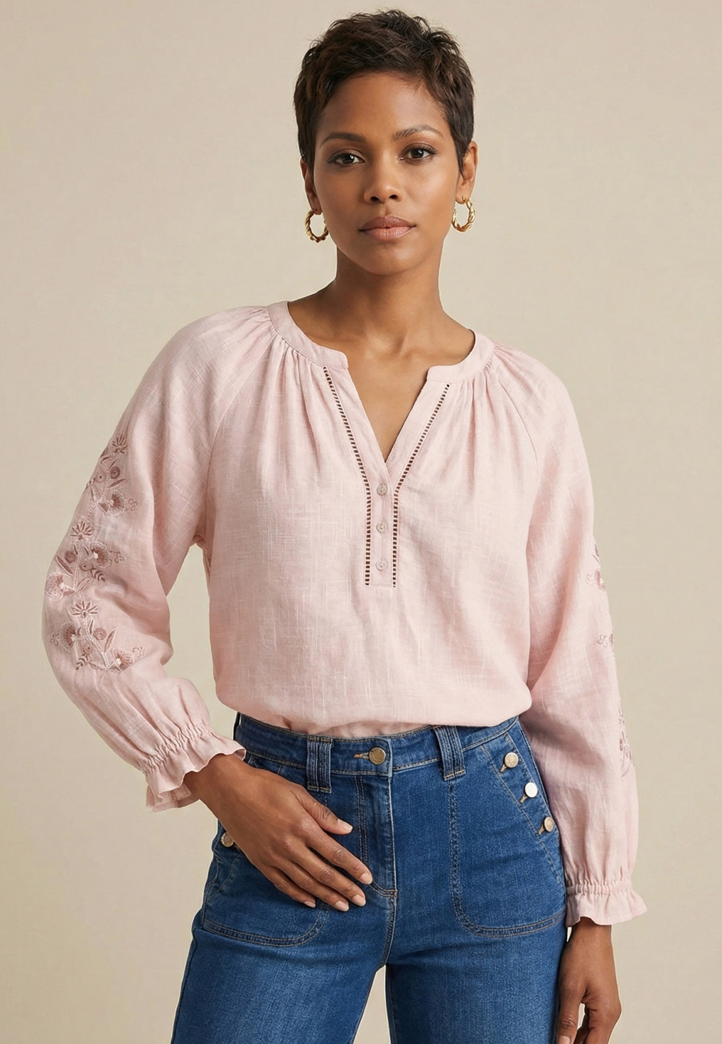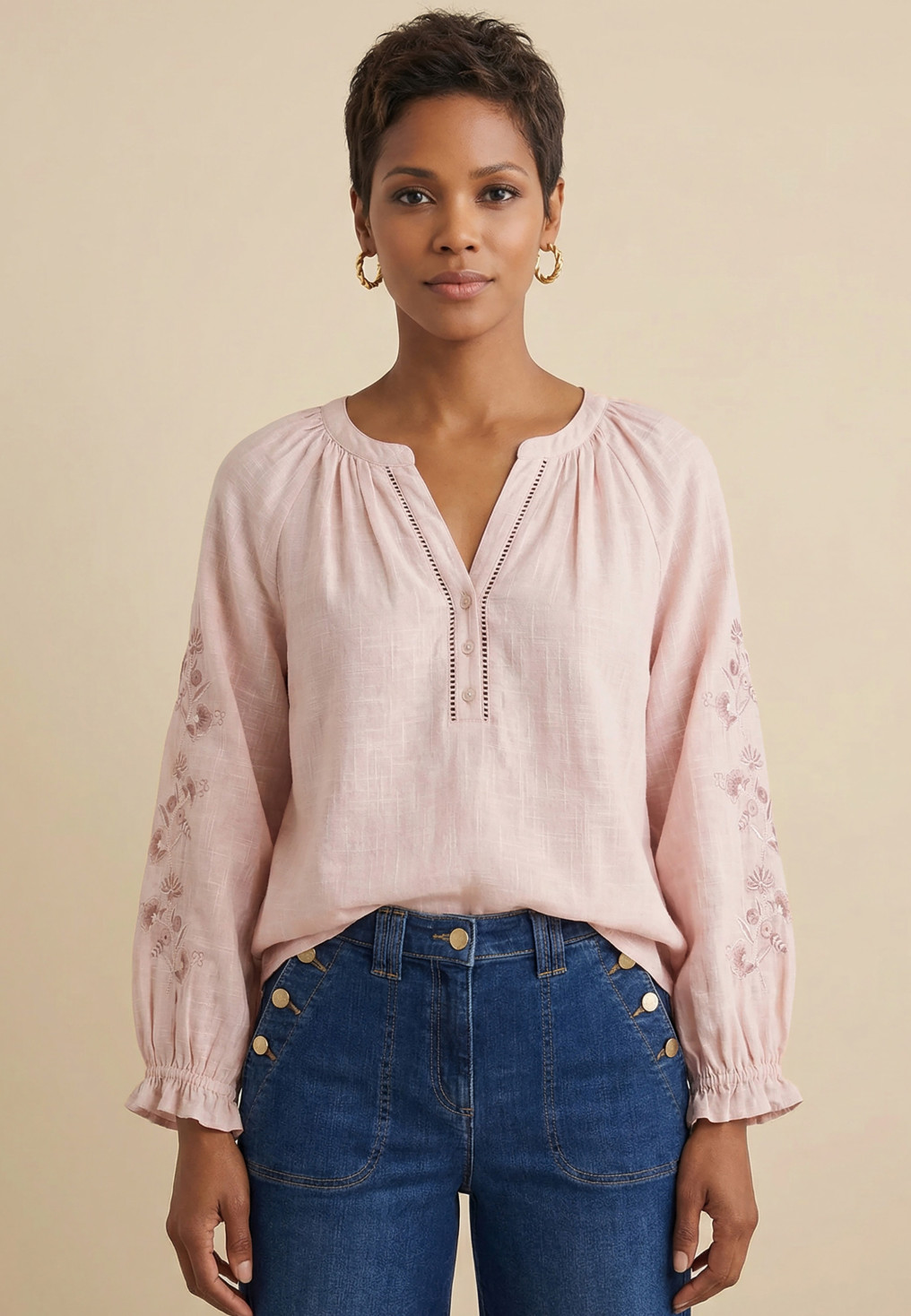 - Manches 3/4 amples