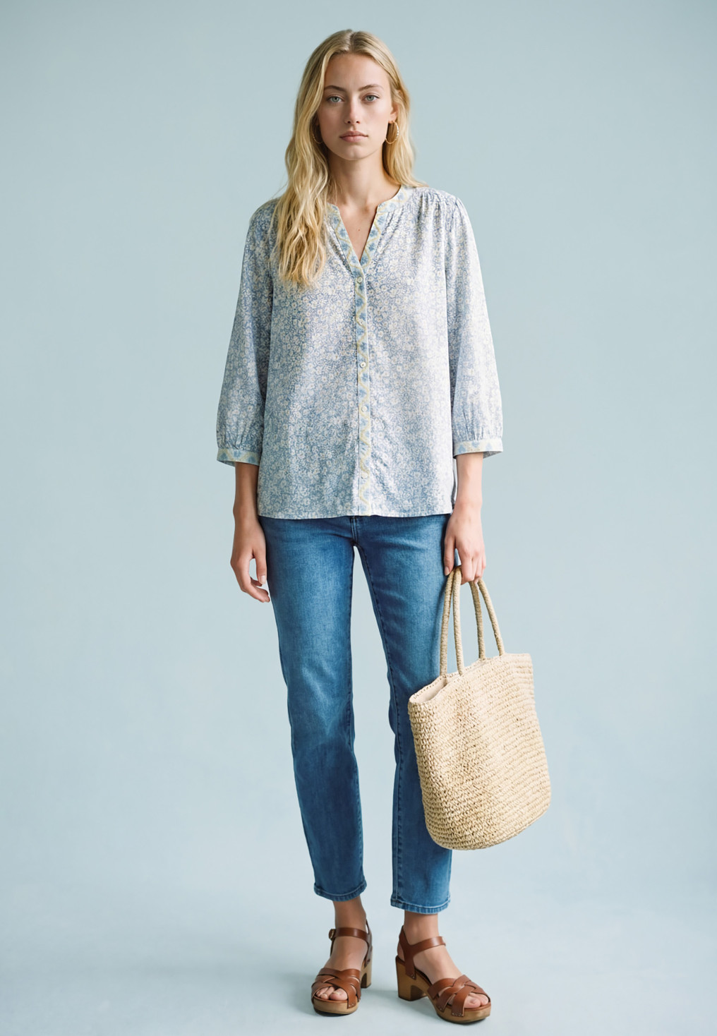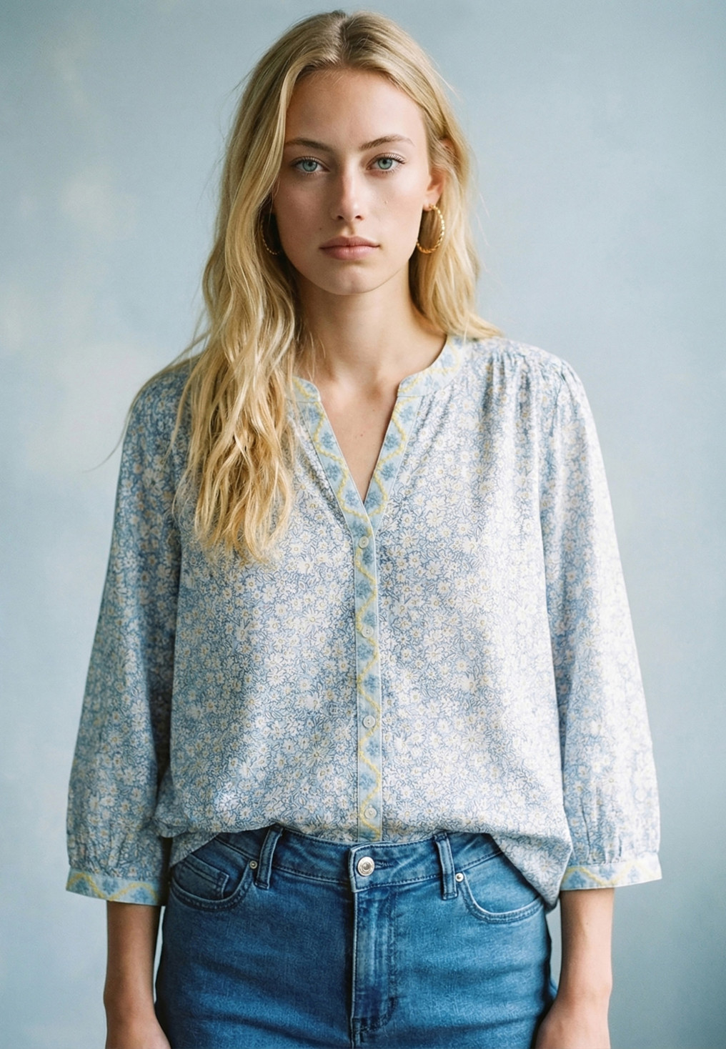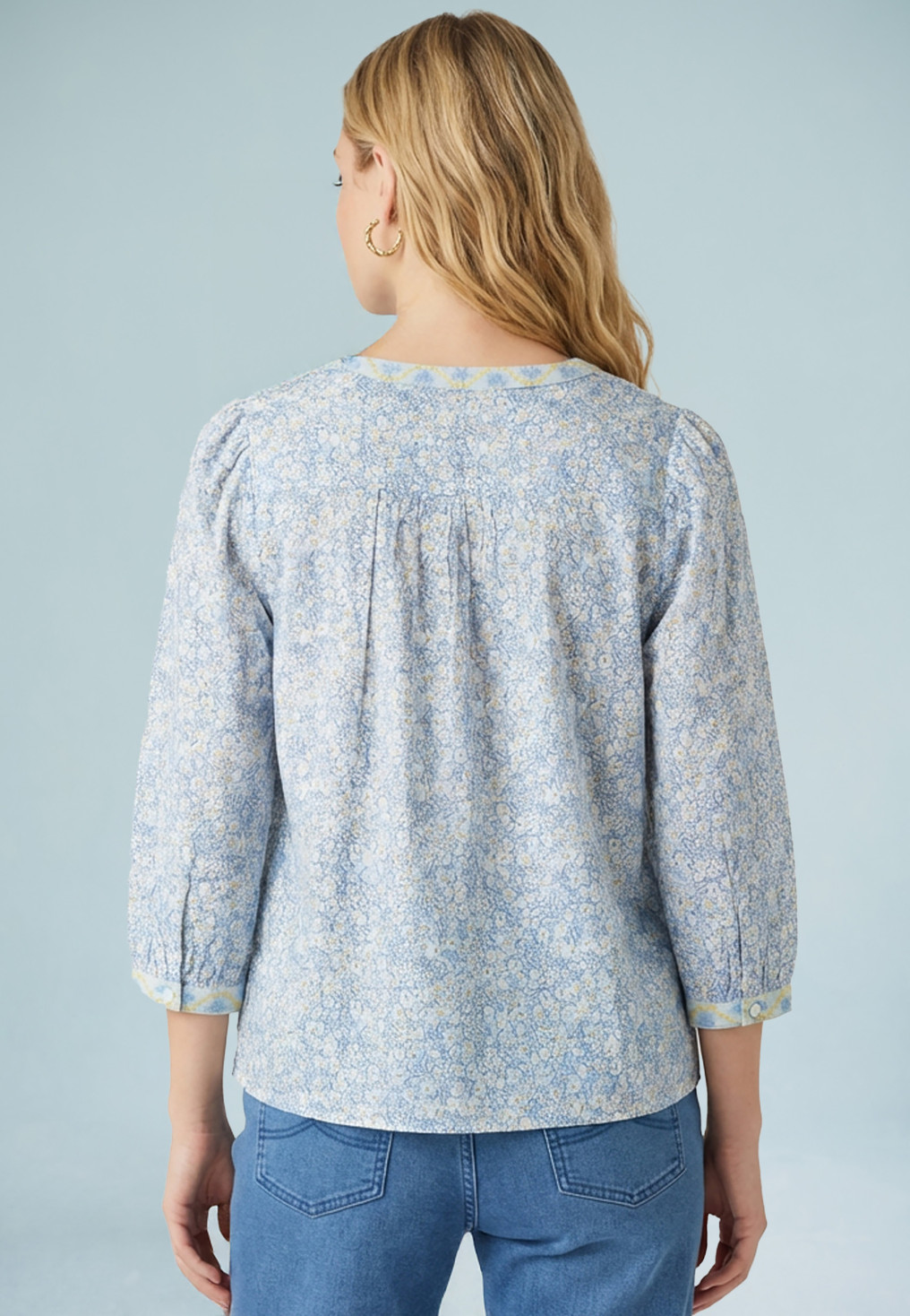 CHEMISE MANCHE 3/4 - SULTANA - BLEU/JAUNE