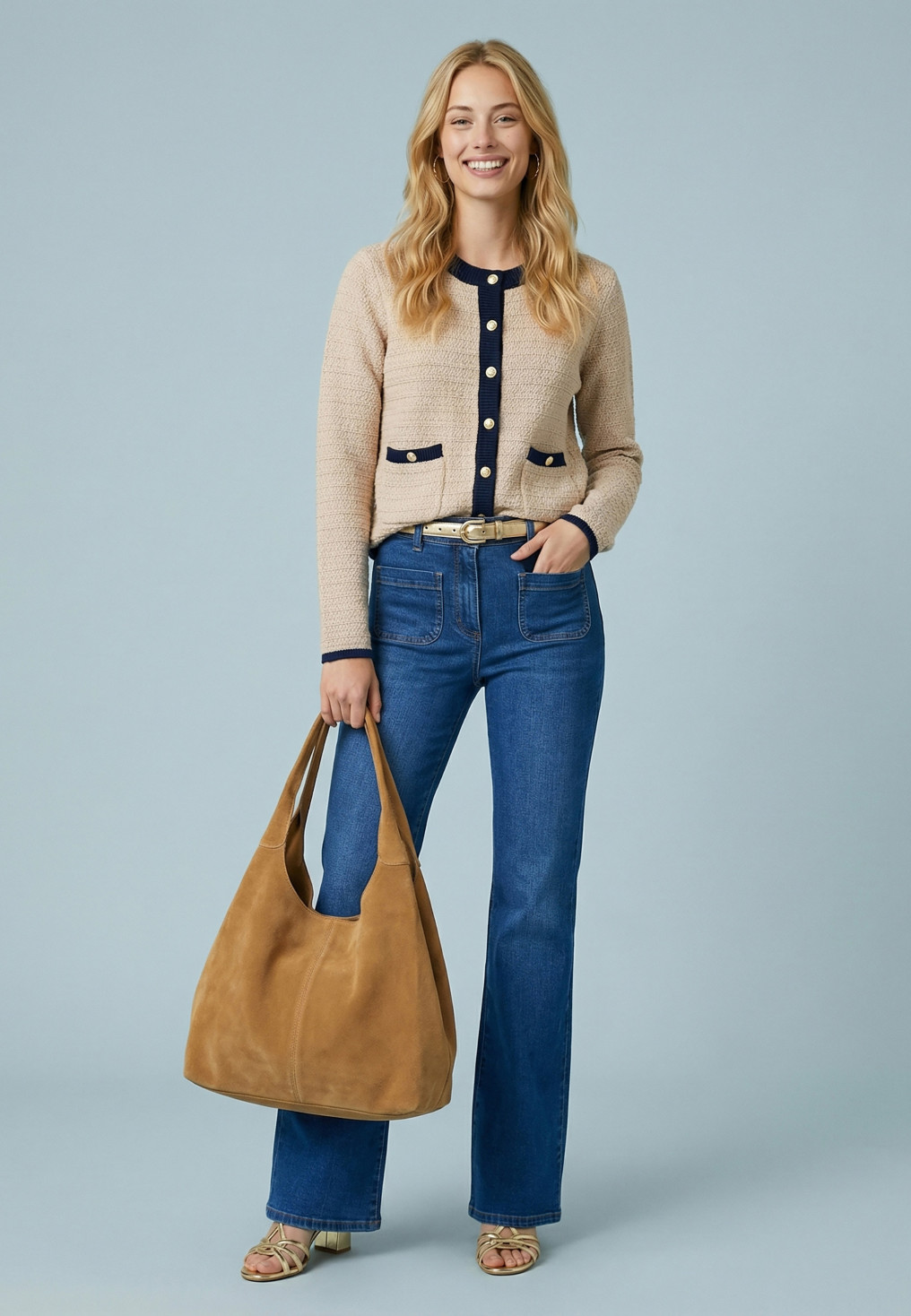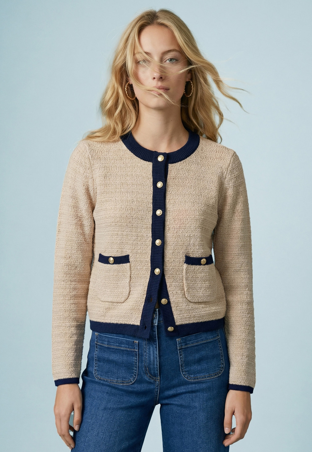 CARDIGAN - SOLFEGE - BEIGE/MARINE