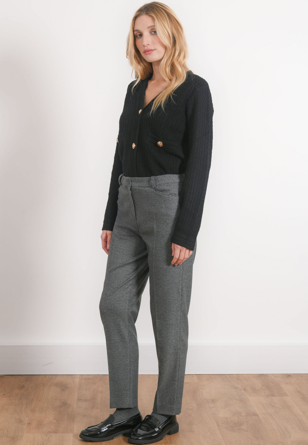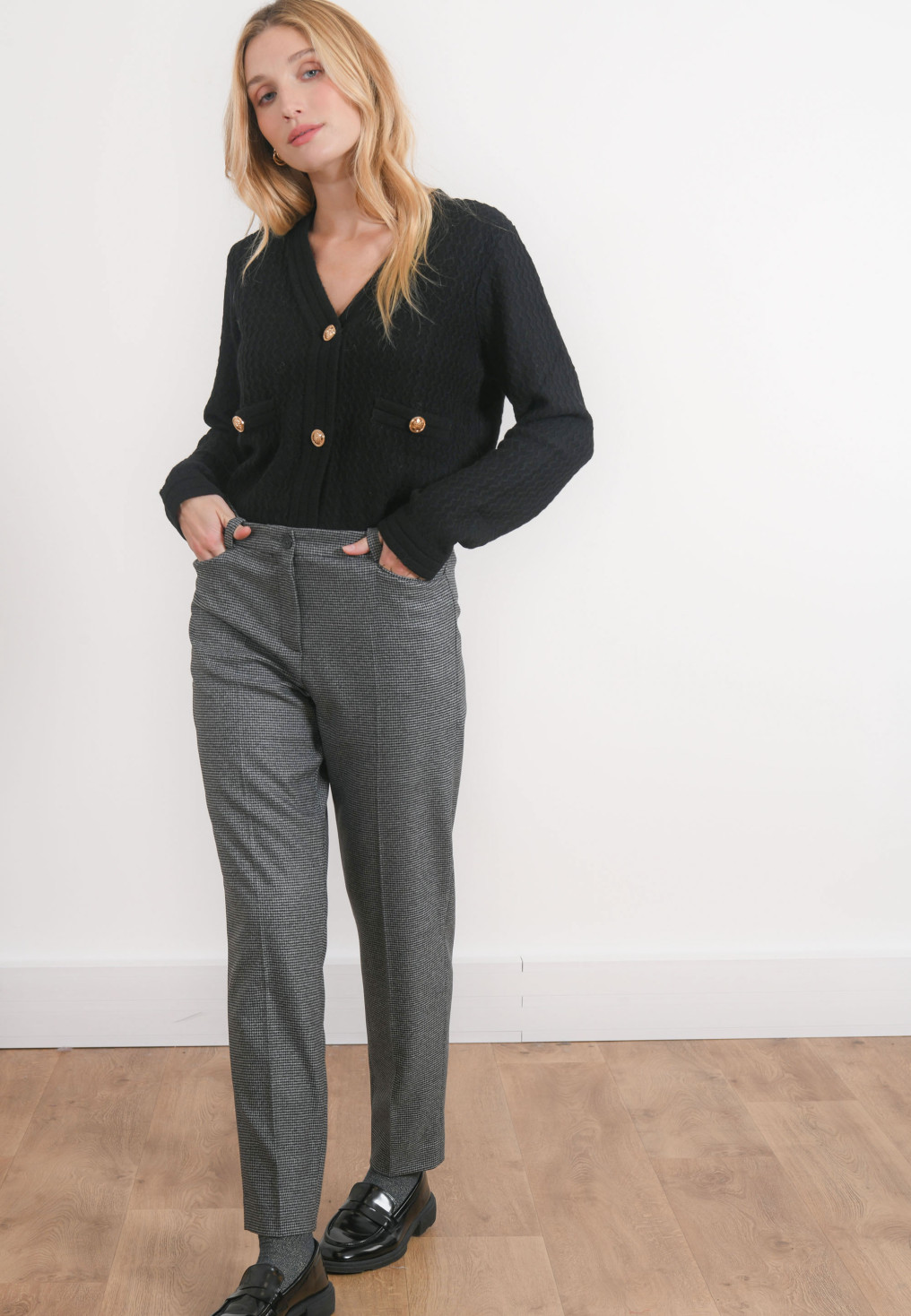 • Disponible en coloris gris et taupe, motif pied de puce