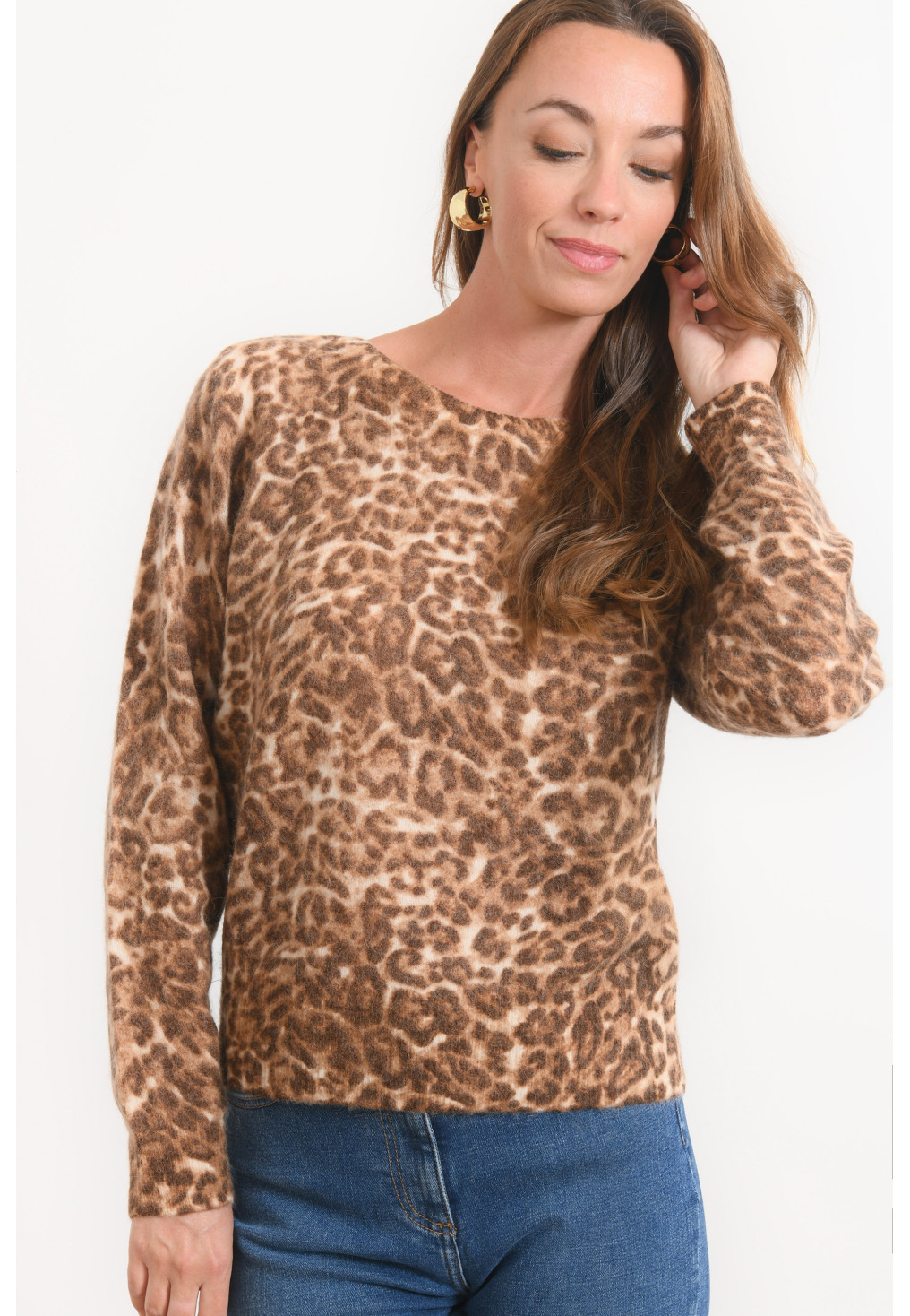 • Coloris camel, motif animalier façon léopard