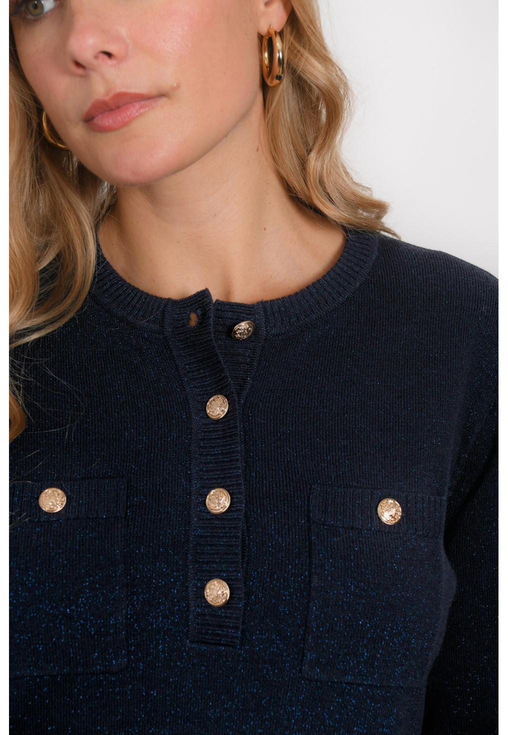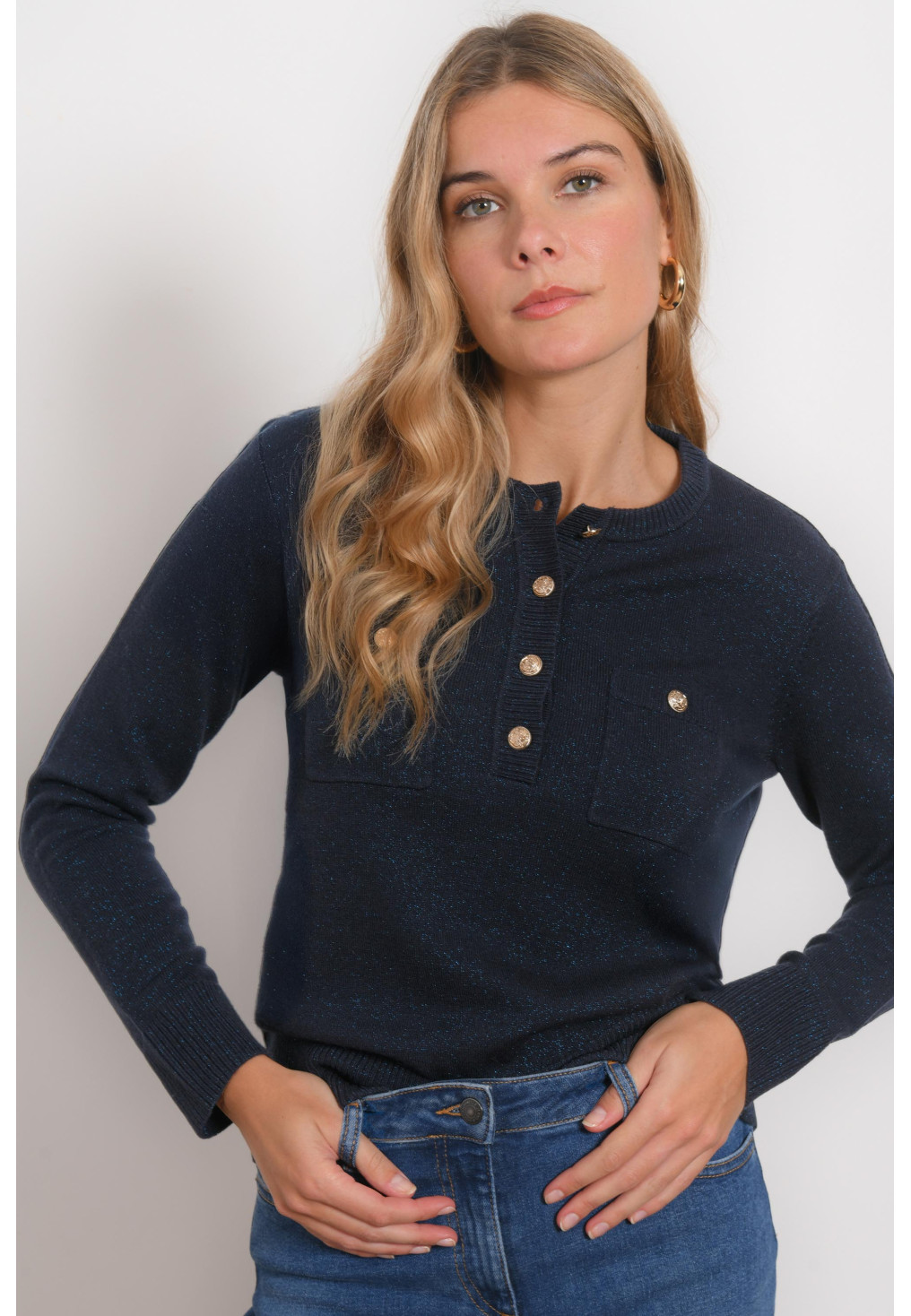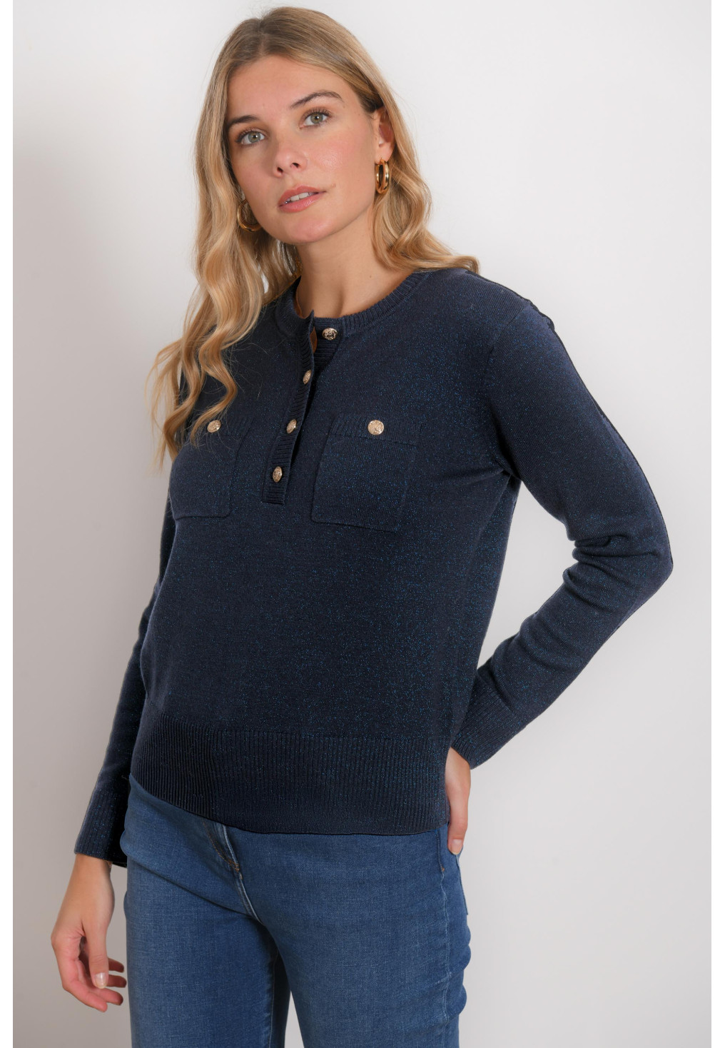 • Pull col tunisien pailleté Maille laine mélangée (49% laine), avec fil lurex