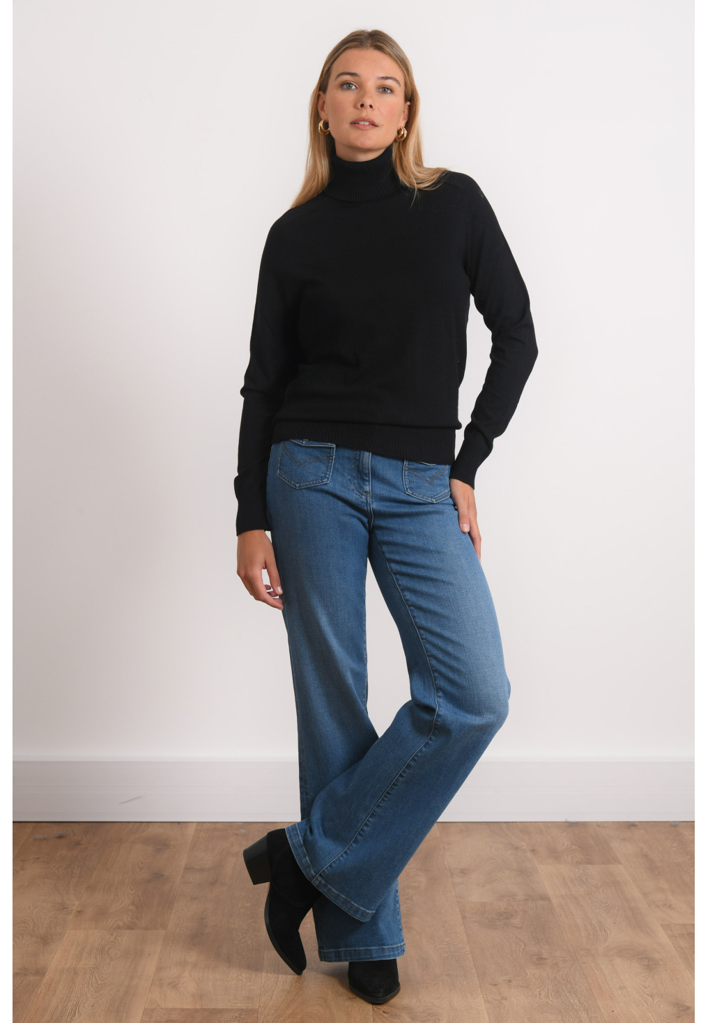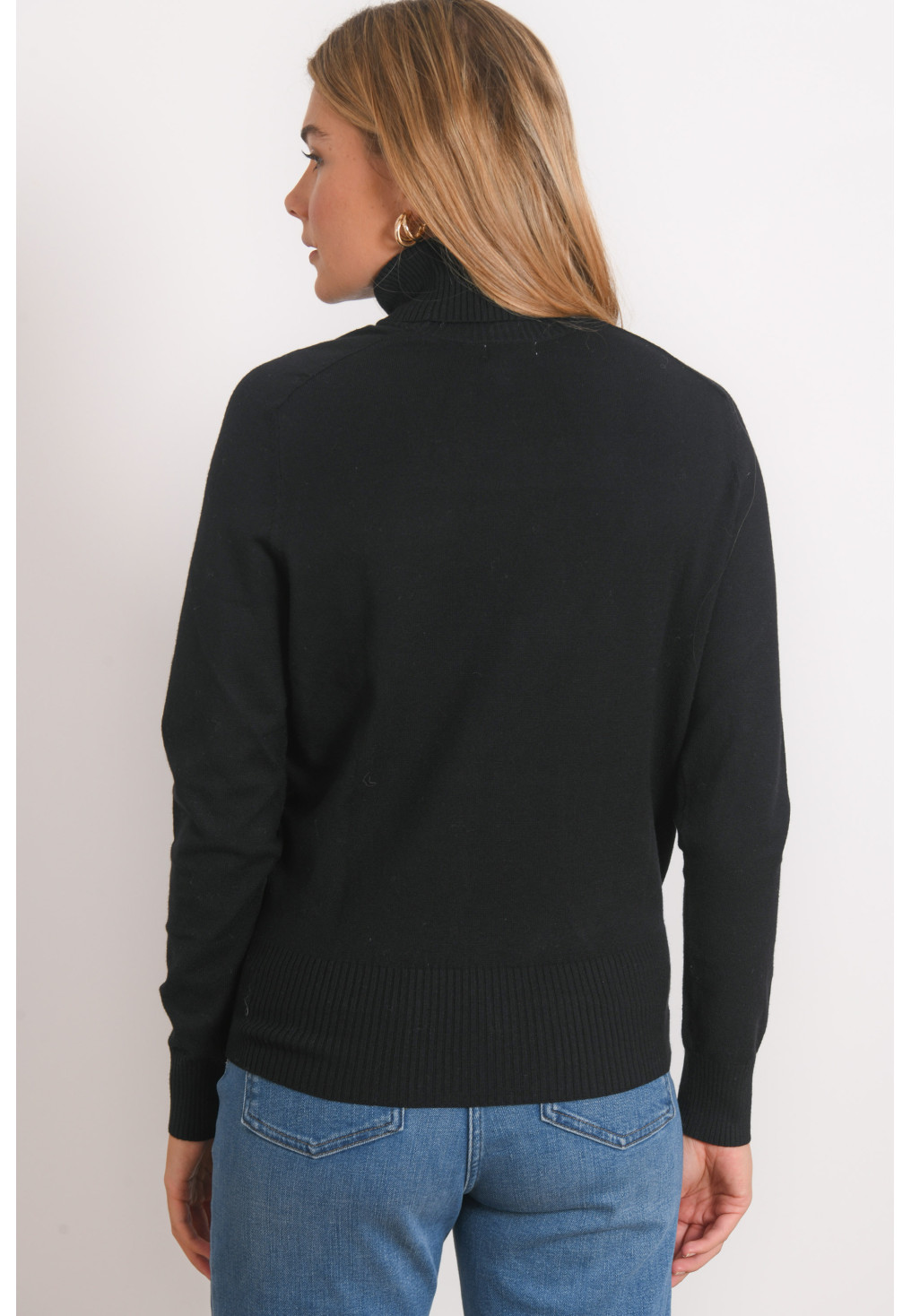 • Pull uni col roulé en maille