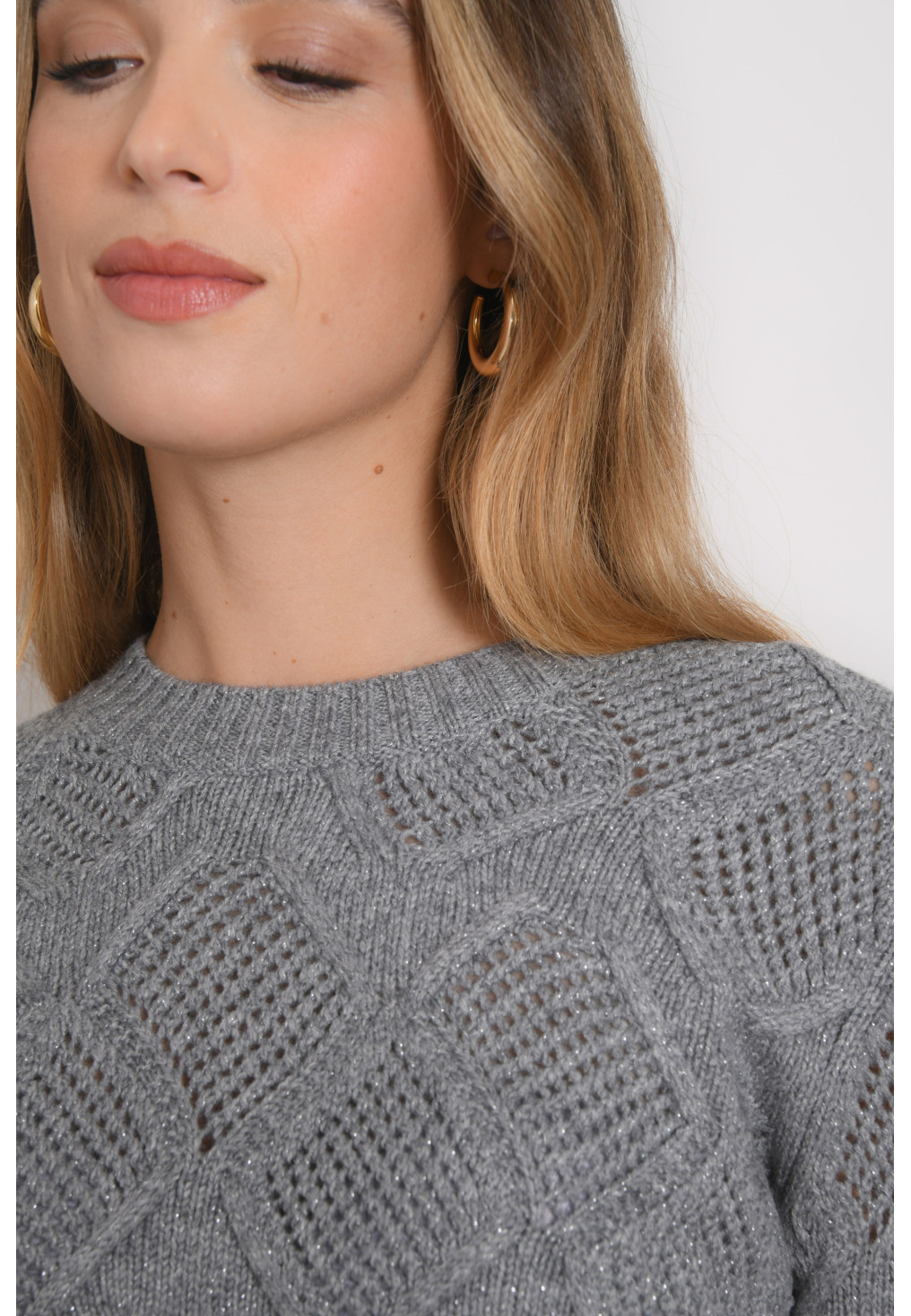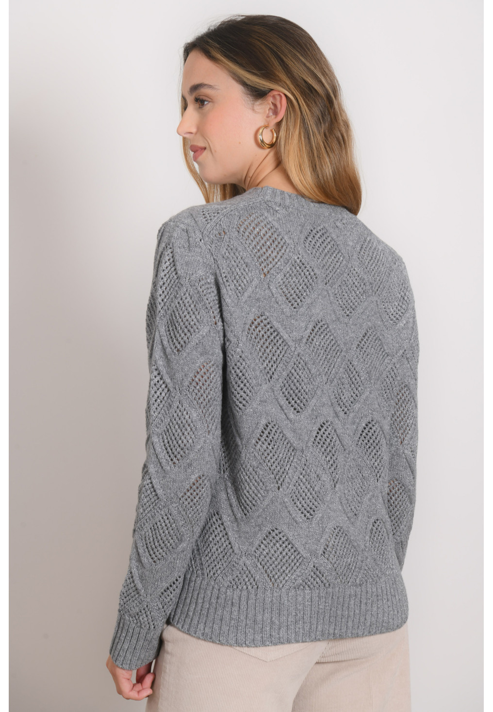 • Maille laine mélangée (48%), avec fil lurex