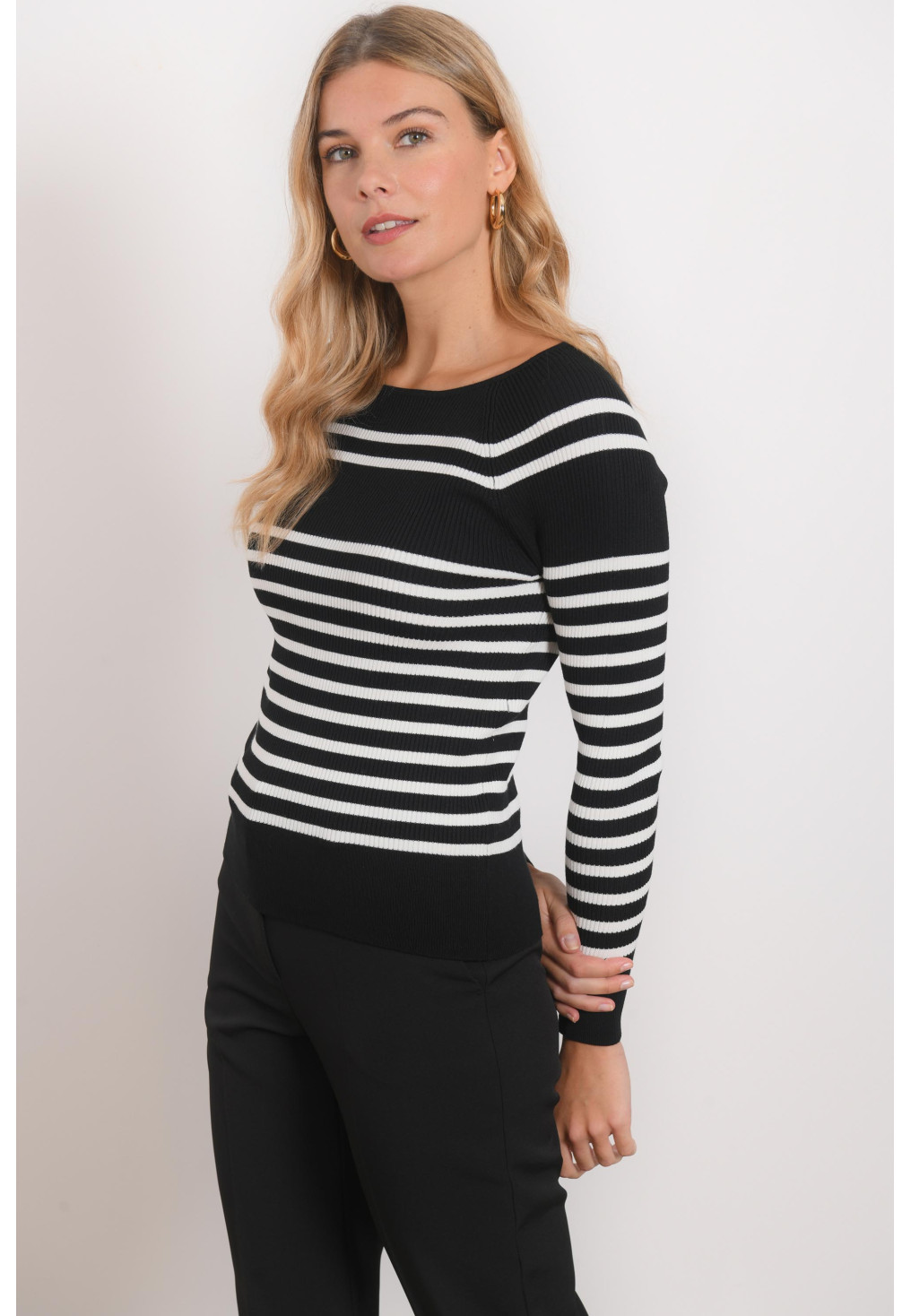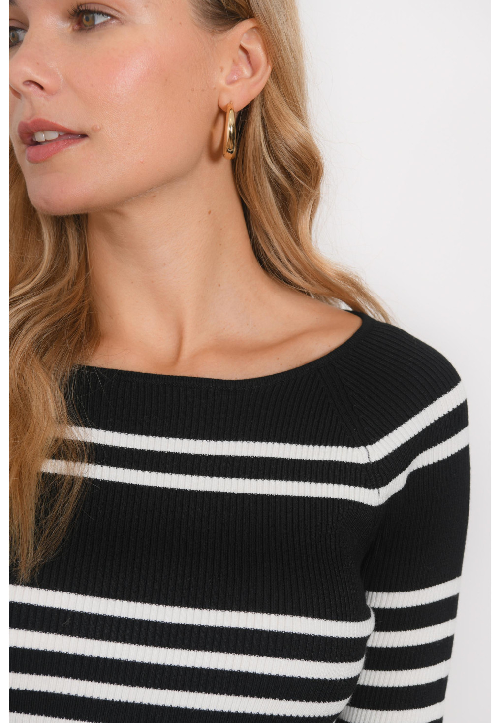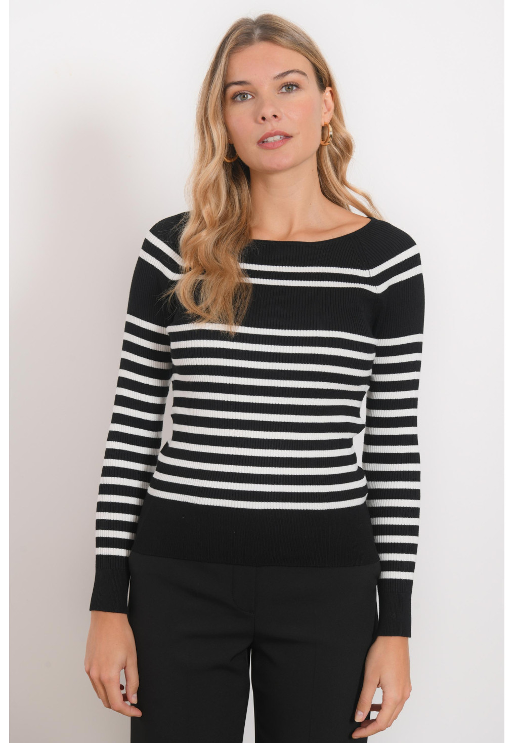 PULL COL BATEAU - ROXANNE - NOIR/ECRU