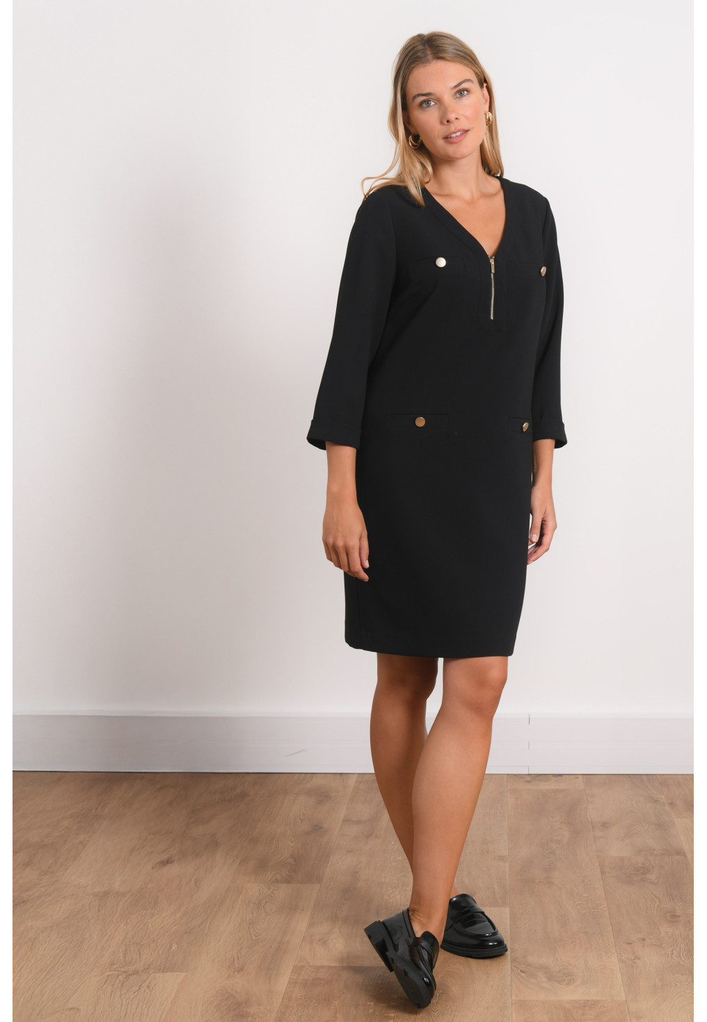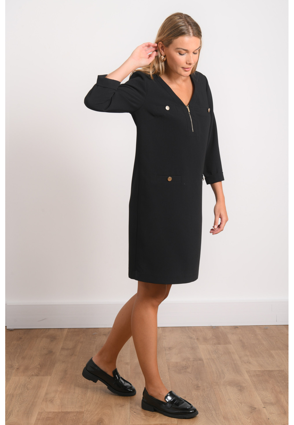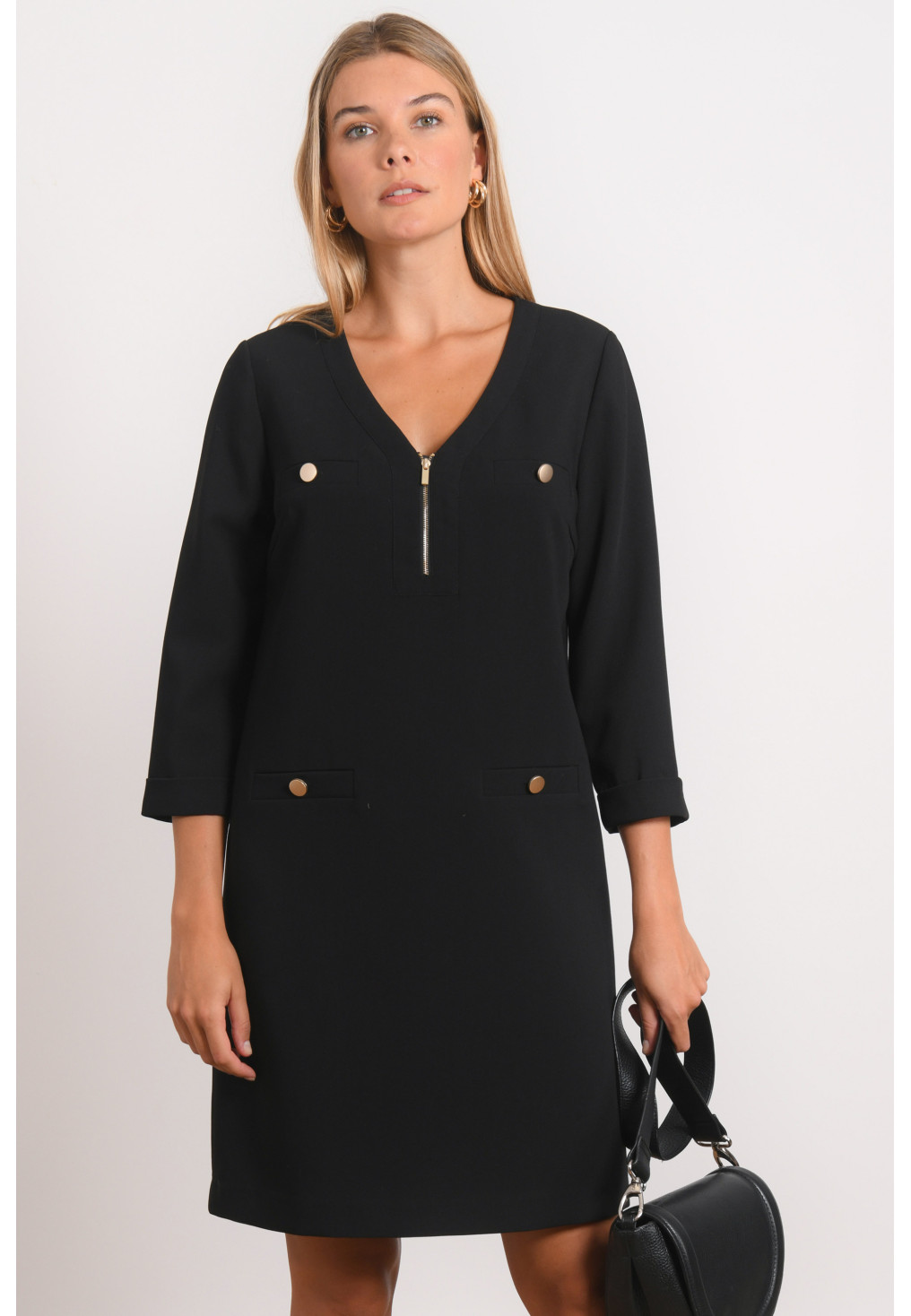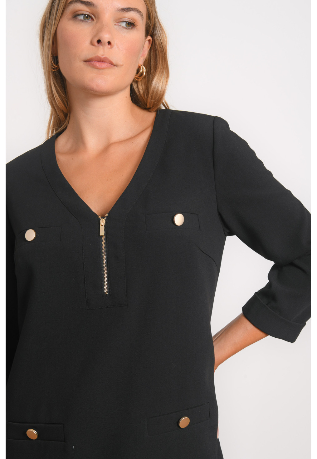 • Encolure V avec zip métal